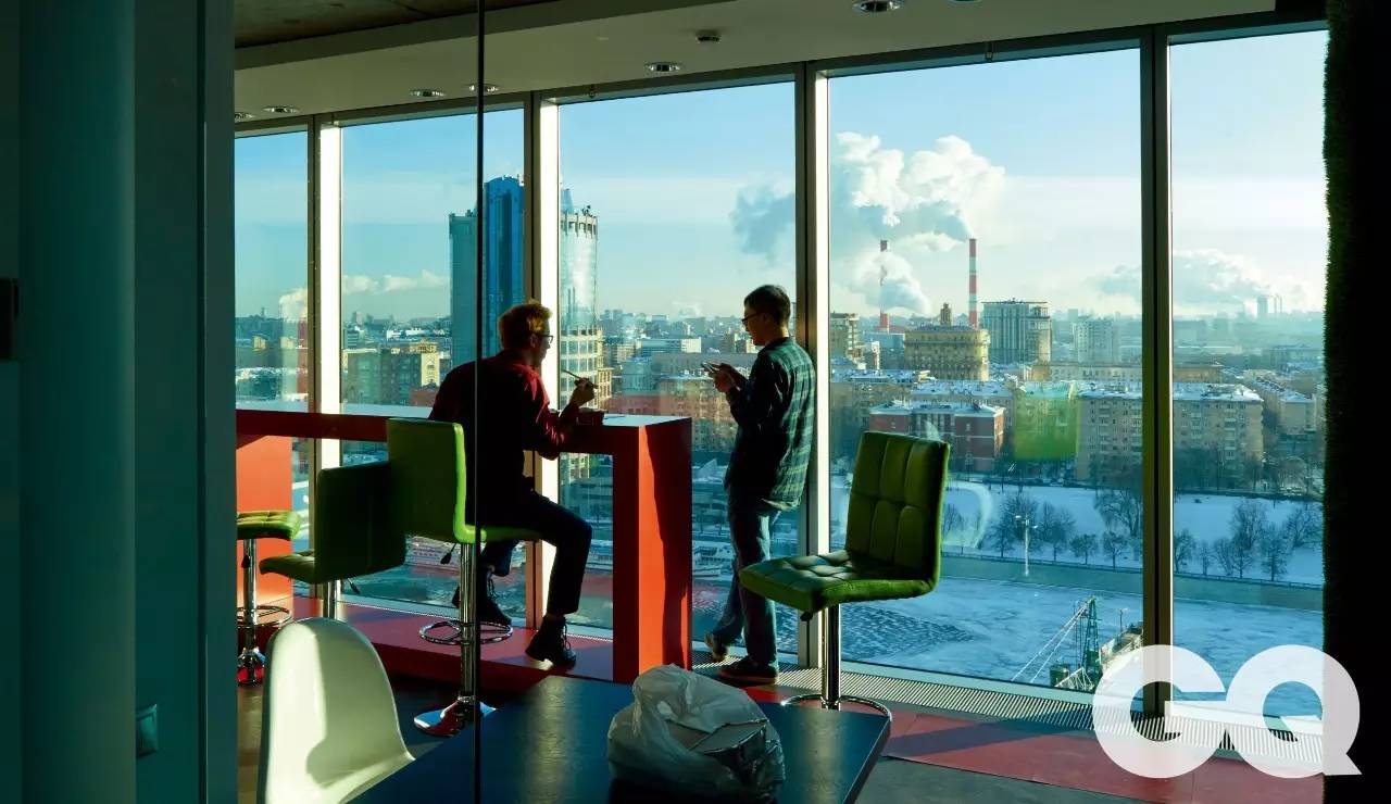 马克终于有了办公室,并且是在莫斯科最高端的 CBD 区域“Moscow City”,极尽奢华。但从窗口望出去,有一个大坑,围满绿色的脚手架。四年了,这个CBD还在打地基。